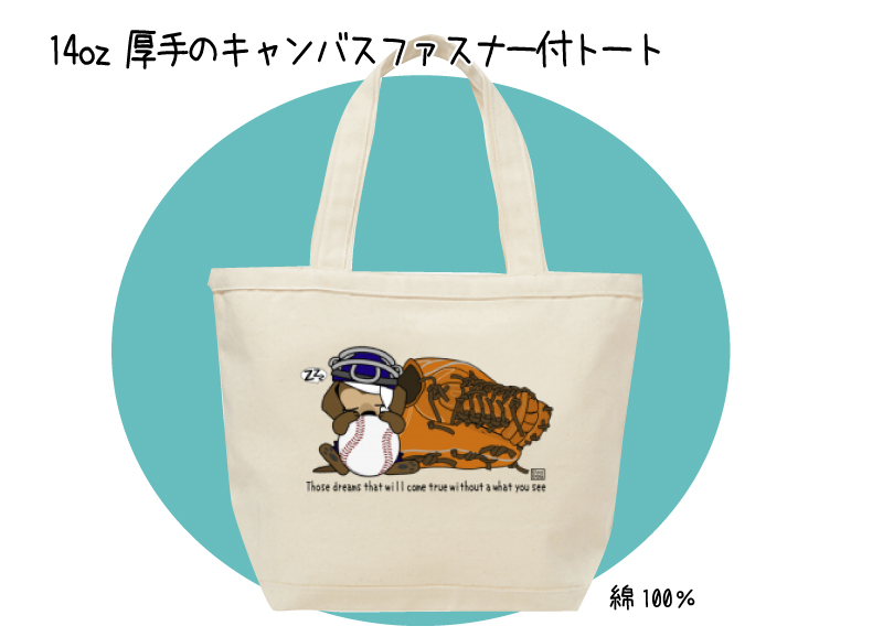 14oz 厚手のキャンバスファスナー付トート